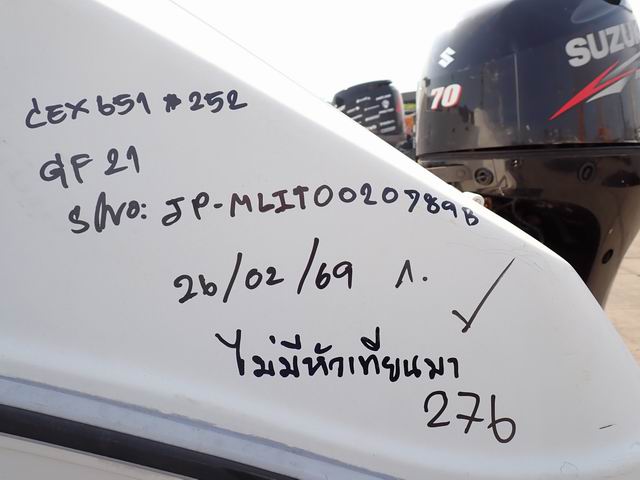 เรือ ขนาด 21 ฟุต พร้อมเครื่องยนต์เบนซิน 70 แรงม้า หางเสือ 24 นิ้ว
