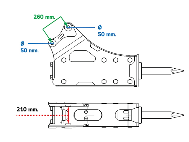 หัวกระแทก*ไม่เคยใช้งาน สลักโต 50 มม. ระหว่างหู 210 มม. ระหว่างสลัก 260 มม.
