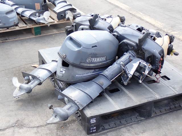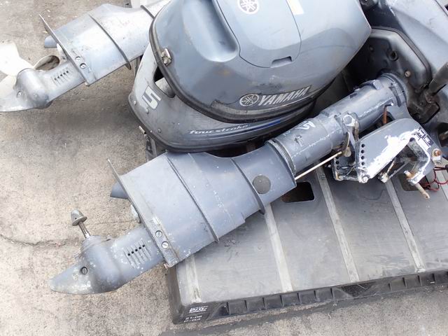 เครื่องยนต์เรือเบนซิน 5 แรงม้า หางเสือ 23,24 นิ้ว รวม 2 ตัว ไม่มีใบพัดมา 1 ตัว
