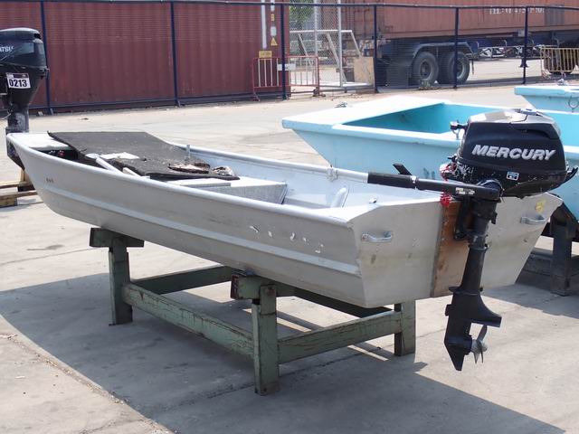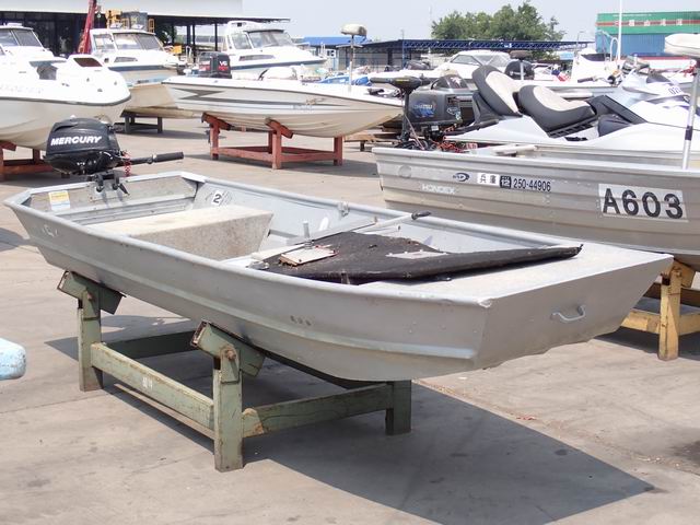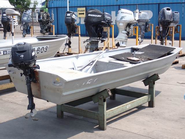 เรืออลูมิเนียม ขนาด 12 ฟุต พร้อมเครื่องยนต์เบนซิน 2 แรงม้า หางเสือ 17 นิ้ว