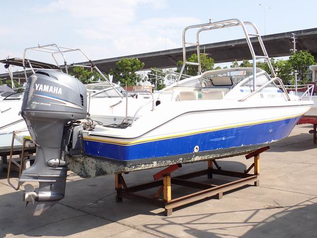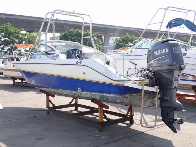 เรือ ขนาด 21 ฟุต พร้อมเครื่องยนต์เบนซิน 115 แรงม้า หางเสือ 25 นิ้ว