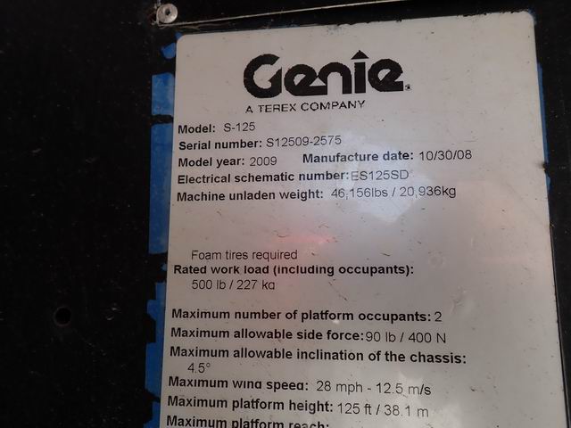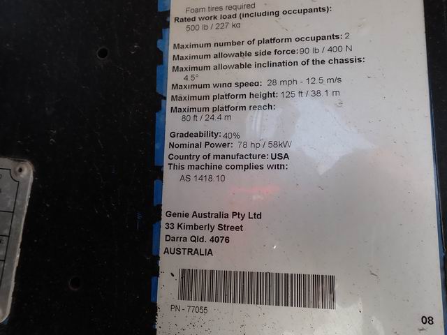 รถกระเช้าแบบบูมลิฟท์ สูง 125 ฟุต(38.1 เมตร) เครื่องยนต์ดีเซล 4 สูบ ปี2009