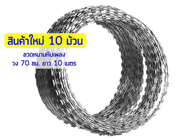 ลวดหนามหีบเพลง ลวดหนามทำรั้ว วง 70 ซม. ยาว 10 เมตร 10 ม้วน *สินค้าใหม่