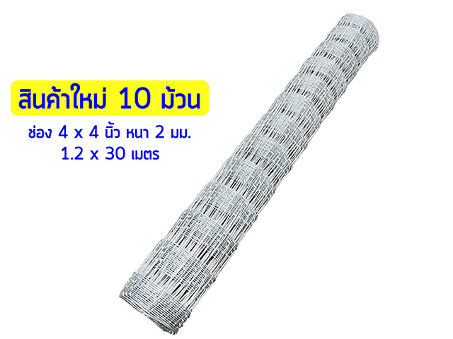รั้วตาข่าย รั้วตาข่ายถักปม ช่อง 4x4 นิ้ว หนา 2 มม. 1.2x30 เมตร 10ม้วน*สินค้าใหม่
