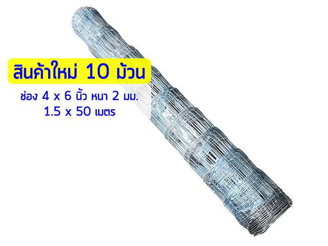 รั้วตาข่ายถักปม รุ่นตาถี่ล่างห่างบน 4x6 นิ้วหนา 2 มม.1.5x50เมตร10ม้วน*สินค้าใหม่