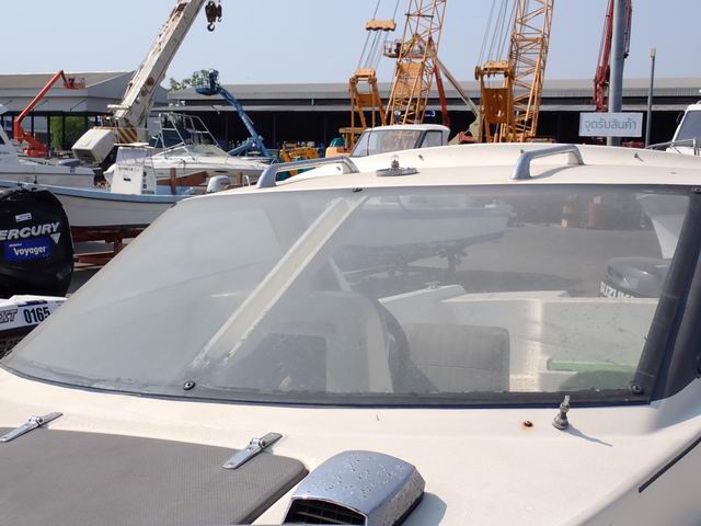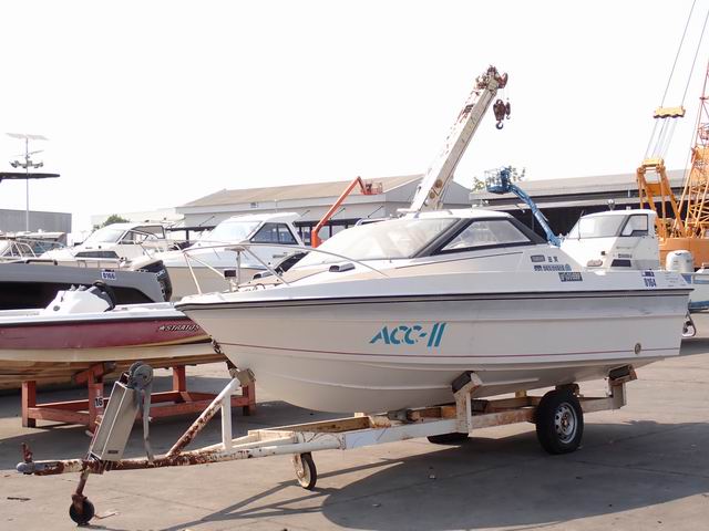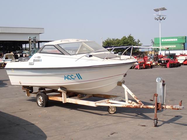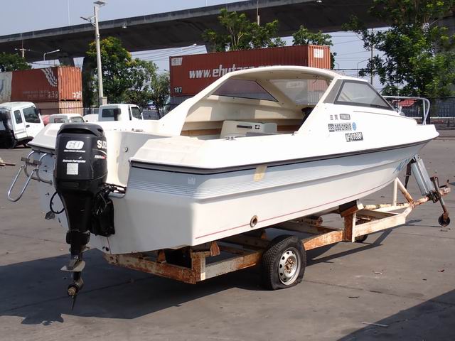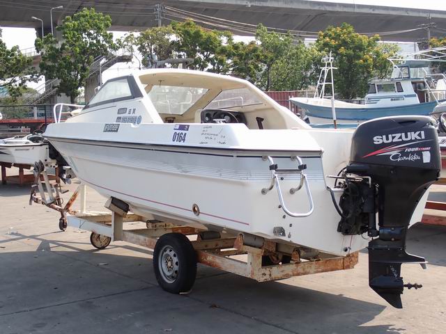 เรือขนาด 17 ฟุต พร้อมหางลาก เครื่องยนต์เบนซิน 60 แรง หางเสือ 21 นิ้ว ไม่มีใบพัด